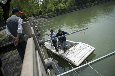 貼沙河是杭州的水源保護區(qū),景致幽靜,每年入夏都有不少外來務工者下水游泳,造成多起溺亡事故。另外,河邊偷釣行為也屢禁不止。一入夏,河面上的釣竿可就不安分起來了,不少人偷偷在河邊垂釣,而且還下水游泳圖“涼快”,屢禁不止城管于是筑起這道“防護硬隔離”。設置這樣的“硬隔離”,就是為了讓游泳的人不能下水,給釣魚的人制造障礙,增加垂釣難度,讓他們知難而退。