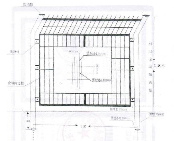 6.金屬護欄網(wǎng)網(wǎng)片施工方法:根據(jù)要求按照基礎及立柱施工,而后進行網(wǎng)片安裝施工。施工工程根據(jù)直線原則,同時又要對不平整地形,盡量整成直線平坡或斜披,使結構上不要有太大起伏。一下是框架護欄網(wǎng)安裝圖紙說明: