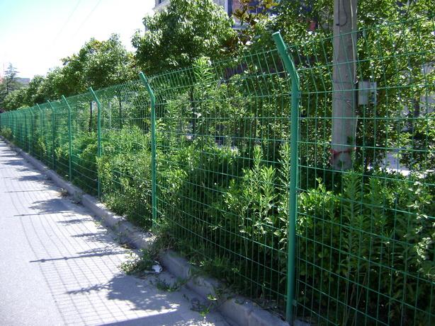 景區(qū)隔離柵種類四:三角折彎護(hù)欄網(wǎng)、網(wǎng)片可采用2-4道彎、常與桃型立柱組合,高端大氣、價格相對較高,立柱與網(wǎng)片可采用不同顏色搭配、相當(dāng)靚麗美觀。常用立柱規(guī)格50x70x1.2mm或70x100x1.2mm;網(wǎng)片網(wǎng)格多采用75x150mm其它規(guī)格都可按要求定做。